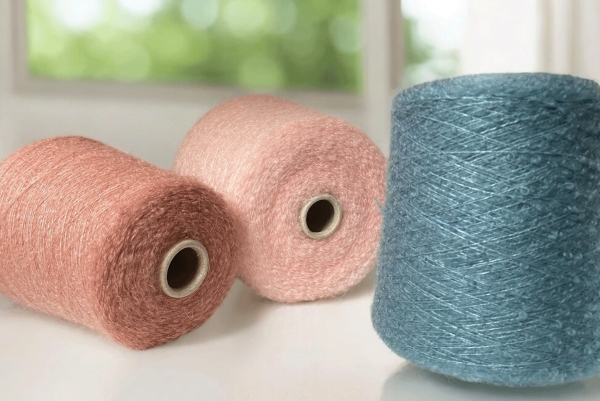 Ніжна, м'яка, пухнасата, абсолютно невагома, дрібнобукльована пряжа з благородним блиском. Кідмохер обмотаний на шовкову основу у вигляді дрібних кілець.